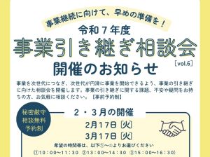 事業継続に向けて、早めの準備を!事業承継・引継個別相談会のご案内