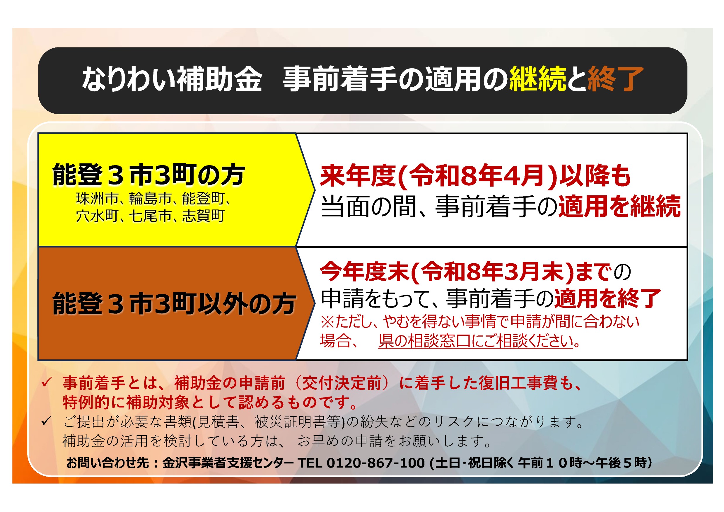 この度、地震からの復旧を補助するなりわい補助における事前着手の適用についてご連絡させていただきました。