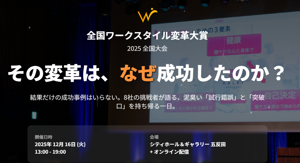 規模や業種は問いません。大企業も中小企業も、スタートアップも、それぞれの現場で働き方を変えようとするすべての組織が対象です。