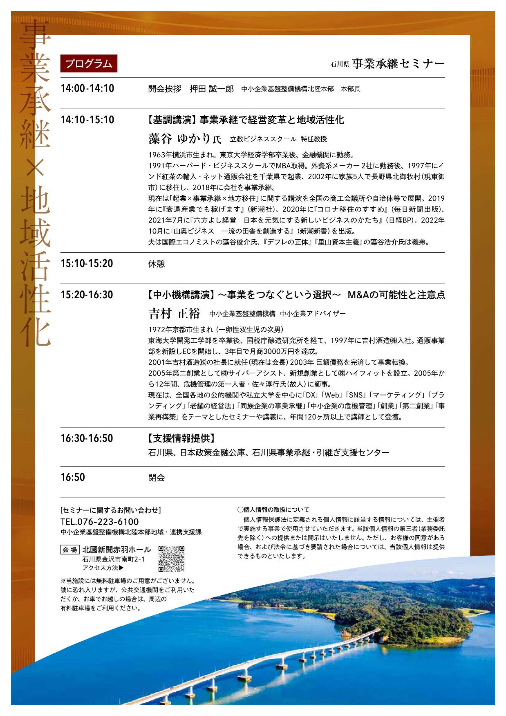 1.【中小機構北陸本部・石川県事業承継・引継ぎ支援センター主催】事業承継セミナー
